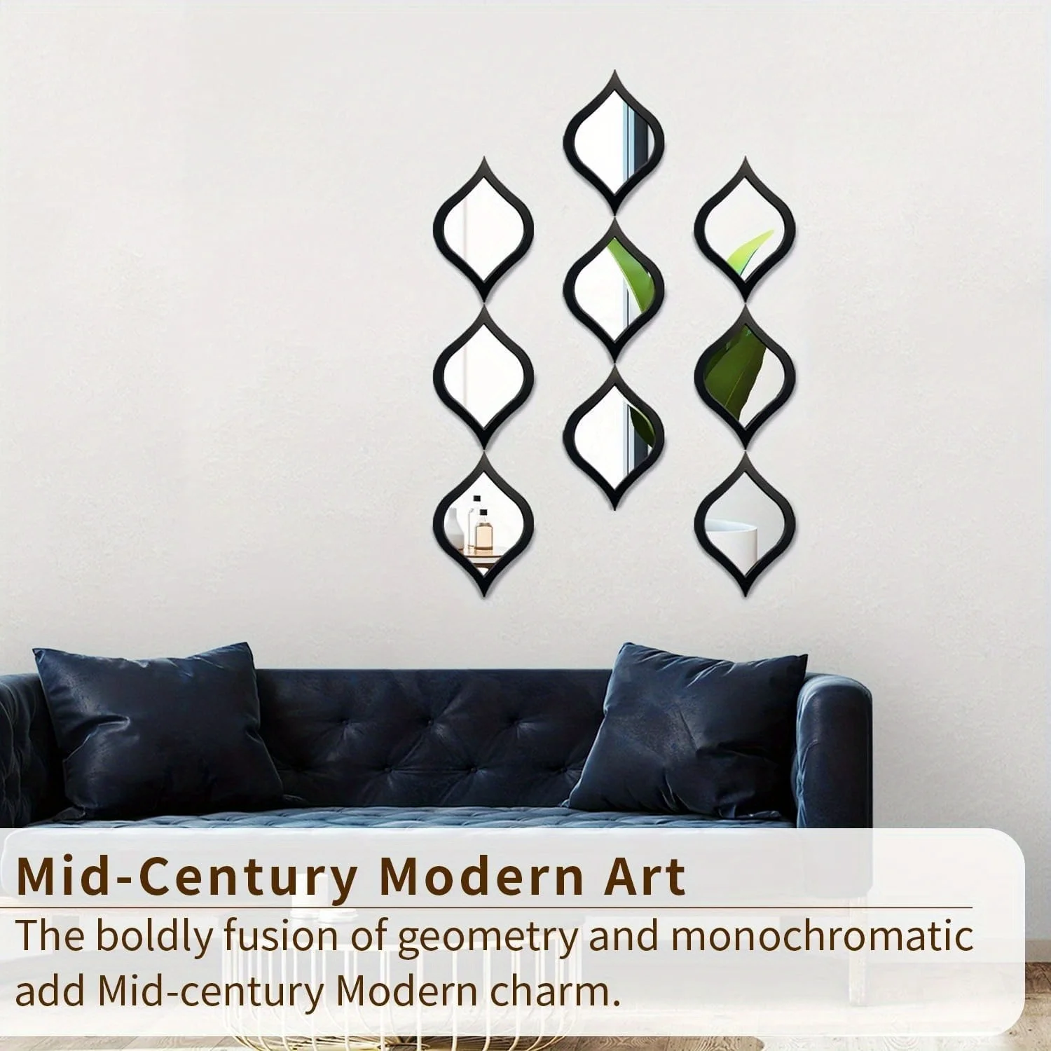 Elevate your walls with this 3-piece modern tear drop mirror décor set. Unique tear drop and moon-inspired shapes add a stylish boho aesthetic. Reflective surfaces help brighten and visually expand your space. Perfect for bedrooms, living rooms, hallways, or offices. Lightweight design makes installation quick and hassle-free. Versatile arrangement allows you to create your own wall layout. Modern and bohemian style blends with a variety of interiors. Durable material ensures long-lasting decorative appeal. Adds elegance, depth, and personality to any room. Transform your space with this chic and eye-catching mirror wall art.