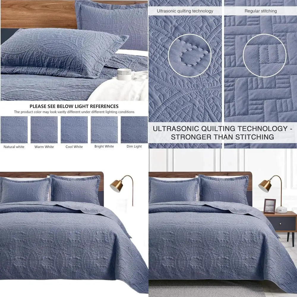 Refresh your bedroom with this Blue Lightweight Summer Quilt Set, featuring a stylish modern coin pattern that adds texture and elegance to your space. Designed specifically for a queen-size bed, this bedding set offers the perfect balance of comfort and breathability for warmer seasons. Crafted from soft, lightweight fabric, the quilt provides cozy coverage without feeling heavy, making it ideal for summer nights or layering during cooler months. The elegant blue tone brings a calm, relaxing atmosphere to your bedroom décor. This complete set includes a quilted comforter and two matching pillow shams, creating a coordinated and polished look for your bed.