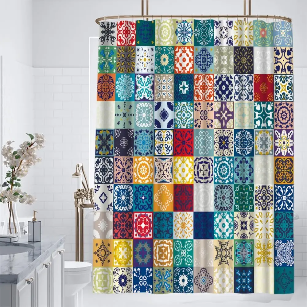 Add vibrant style to your bathroom with this boho patchwork shower curtain. Designed in a 72×72 inch size, it fits most standard showers and tubs. Features a colorful patchwork pattern inspired by Moroccan and vintage designs. Floral details bring a lively and artistic touch to your space. Made from durable fabric that is lightweight and easy to maintain. Provides privacy while helping keep water contained in the shower area. Comes with hooks for quick and easy installation. Perfect for bathrooms, guest rooms, or adding a bohemian vibe to your home. The rich colors and patterns enhance a wide range of décor styles. Transform your bathroom into a stylish and cozy retreat with this unique shower curtain.