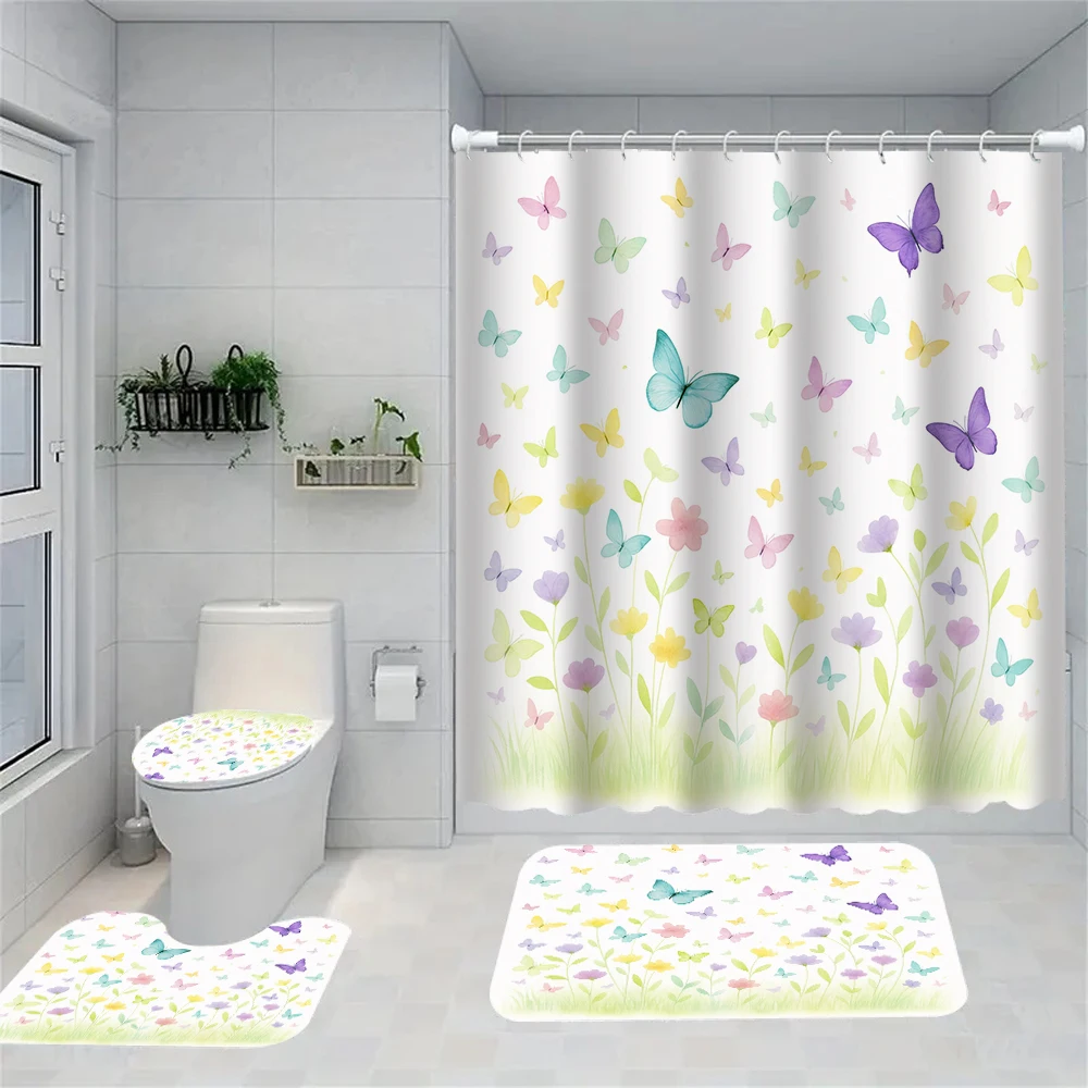 Brighten your bathroom with this 4-piece butterfly shower curtain set. Includes a shower curtain, toilet seat cover, carpet, and toilet lid cover for a coordinated look. The 70.8×70.8 inch shower curtain fits most standard bathtubs and showers. Features a colorful butterfly design that adds charm and a playful touch to your space. Made from durable and easy-to-clean materials for everyday use. The matching carpet and covers provide comfort and style throughout the bathroom. Perfect for bathrooms, guest rooms, or kids’ bathrooms. Adds a cohesive and decorative touch while keeping your bathroom organized. Easy to install and maintain for convenient daily use. Transform your bathroom into a vibrant and welcoming space with this coordinated butterfly set.