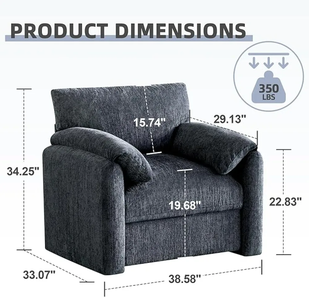 Relax in comfort and style with this chenille oversized armchair. Generous 38.6″ wide design provides spacious seating for ultimate comfort. Soft chenille upholstery creates a cozy and inviting feel. Mid-century modern design adds elegance and sophistication to any room. Sturdy frame and durable construction ensure long-lasting support. Perfect for living rooms, bedrooms, reading nooks, or lounge areas. Comfortable padded seat and backrest for relaxing, reading, or lounging. Versatile style complements modern, retro, or contemporary décor. Ideal for homes, apartments, or cozy small spaces. Combine comfort, style, and durability with this oversized accent chair.