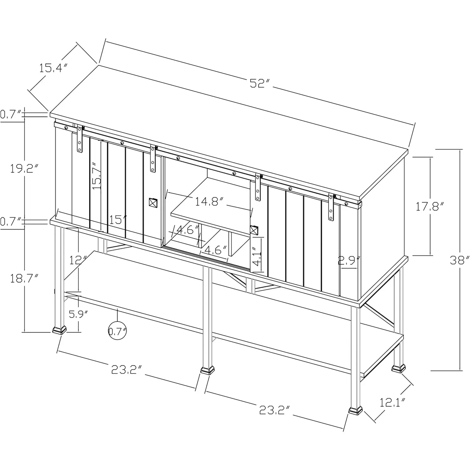 Elevate your space with this 52-inch farmhouse wine cabinet. Designed with two sliding barn doors for stylish concealed storage. Includes built-in wine rack and glass holder for organized beverage storage. Spacious shelves provide room for bottles, dishes, or coffee essentials. Perfect as a coffee bar, buffet, or dining room sideboard. Rustic farmhouse design adds warmth and charm to any interior. Durable construction ensures stability and long-lasting use. Ideal for kitchens, dining rooms, or entertainment spaces. Combines functionality with decorative appeal for a complete storage solution. Upgrade your home with this versatile and stylish wine cabinet.