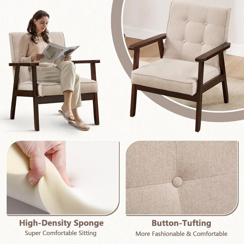 Upgrade your space with this stylish set of 2 mid-century modern accent chairs. Designed with tufted fabric upholstery for a classic and elegant look. Solid wood frame provides durability and long-lasting stability. Comfortable padded seats and backrests offer excellent support. Retro-inspired design adds charm to living rooms, bedrooms, or offices. Perfect for seating guests, relaxing, or creating a cozy reading area. Versatile style complements modern, vintage, or Scandinavian décor. Compact yet comfortable, ideal for apartments or small spaces. Easy to assemble and maintain for everyday use. Enhance your home with these elegant and comfortable accent chairs.