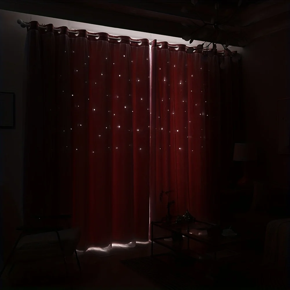 Add elegance and charm to your bedroom with these pink tulle star curtains. The set includes 2 panels, each measuring 39.3×78.7 inches for full window coverage. Double-layer design features blackout fabric beneath soft gauze for light control and privacy. Hollow-out twinkle star patterns create a dreamy and whimsical ambiance. Soft tulle overlay adds a delicate and decorative touch to any room. Perfect for bedrooms, kids’ rooms, or cozy reading nooks. The insulated layers help reduce heat and enhance energy efficiency. Durable fabric ensures long-lasting beauty and daily use. Easy to hang and style for a polished, layered window look. Enhance your décor with these charming, functional, and starry window curtains.