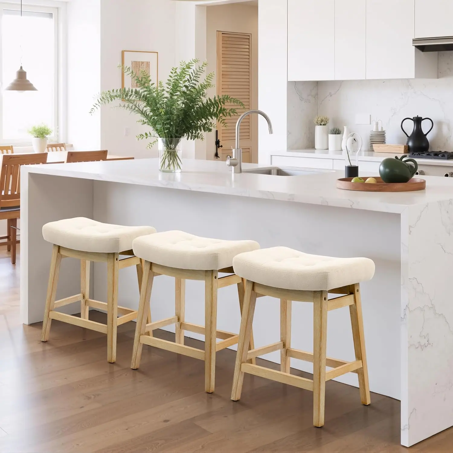 Enhance your kitchen or dining area with this set of 3 backless counter height bar stools. Perfectly sized for kitchen counters, islands, or breakfast bars. Backless design allows easy tucking under counters, saving space. Farmhouse-inspired style adds rustic charm and warmth to any interior. Sturdy construction provides reliable support for daily use. Lightweight and easy to move, ideal for flexible seating arrangements. Versatile stools suitable for kitchens, bars, islands, or casual dining areas. Comfortable height for short-term seating during meals or gatherings. Durable and easy to maintain for everyday convenience. Combine style, functionality, and simplicity with this practical bar stool set.