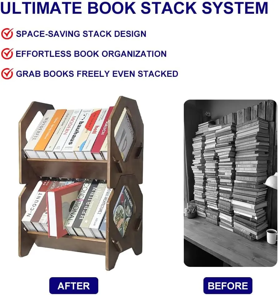 Keep your workspace tidy with this practical stackable desktop bookshelf rack.